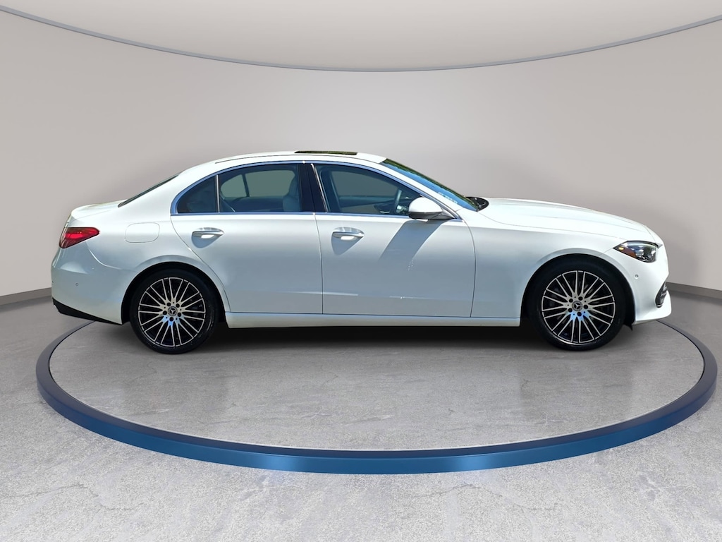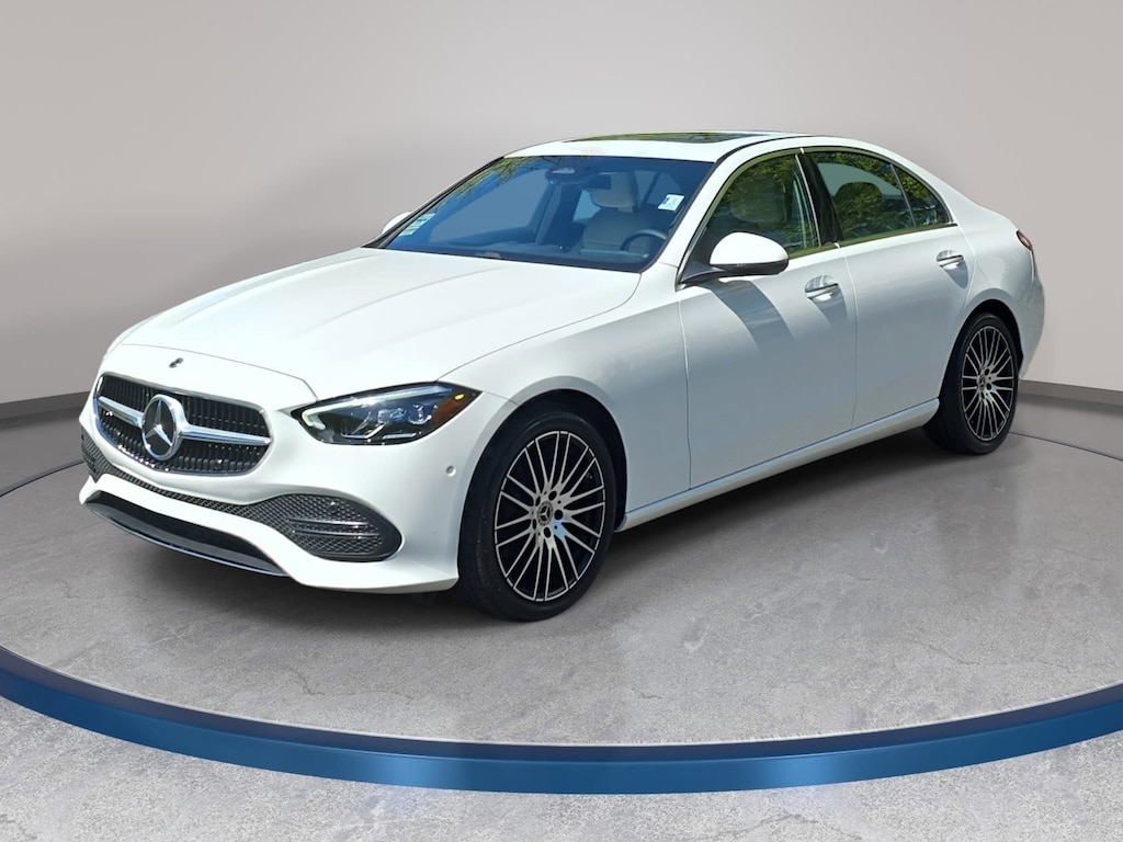 Certified. Polar White 2025 Mercedes-Benz C-Class C 300 4MATIC® 2.0L I4 Turbocharged 4MATIC®, 11.9" Center Touchscreen Display, 4-Wheel Disc Brakes, 5 Speakers, ABS brakes, Air Conditioning, AM/FM radio: SiriusXM, Anti-whiplash front head restraints, Apple CarPlay®/Android Auto®, Auto High-beam Headlights, Auto tilt-away steering wheel, Auto-dimming door mirrors, Auto-dimming Rear-View mirror, Automatic temperature control, Brake assist, Bumpers: body-color, Child-Seat-Sensing Airbag, Compass, Delay-off headlights, Driver door bin, Driver vanity mirror, Dual front impact airbags, Dual front side impact airbags, Electronic Stability Control, Emergency communication system: Mercedes-Benz Emergency Call Service, Exterior Parking Camera Rear, Four wheel independent suspension, Front anti-roll bar, Front dual zone A/C, Front reading lights, Fully automatic headlights, Garage door transmitter: HomeLink, Genuine wood dashboard insert, Head restraints memory, Heated door mirrors, Illuminated entry, Knee airbag, Leather steering wheel, Low tire pressure warning, Lumbar Support, Memory seat, Occupant sensing airbag, Outside temperature display, Overhead airbag, Overhead console, Panic alarm, Passenger vanity mirror, Power adjustable front head restraints, Power door mirrors, Power driver seat, Power Heated Front Seats with Memory, Power steering, Power windows, Premium audio system: MBUX, Radio data system, Radio: FrontBass 5-Speaker Audio System, Rain sensing wipers, Rear anti-roll bar, Rear fog lights, Rear reading lights, Rear seat center armrest, Rear window defroster, Remote keyless entry, Security system, Speed control, Speed-sensing steering, Steering wheel memory, Steering wheel mounted audio controls, Tachometer, Telescoping steering wheel, Tilt steering wheel, Traction control, Trip computer, Turn signal indicator mirrors, Variably intermittent wipers, Weather band radio, Wheels: 18" Multispoke.