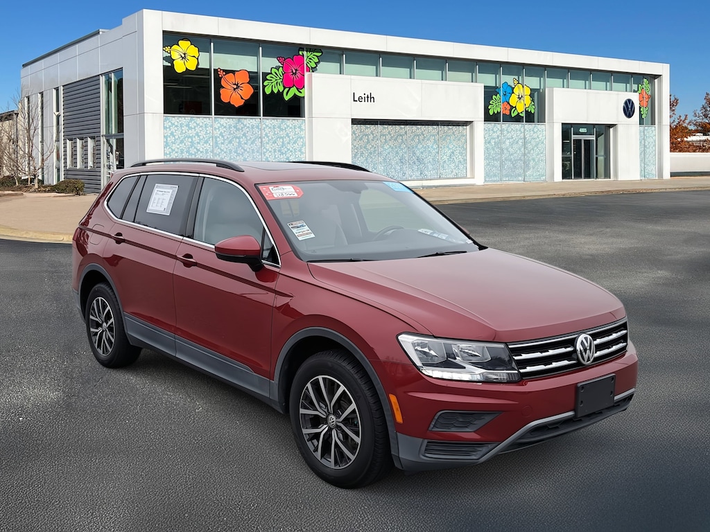 Certified. Cardinal Red Metallic 2019 Volkswagen Tiguan 2.0T SE FWD 8-Speed Automatic with Tiptronic 2.0L TSI DOHC Local Trade, Non-Smoker, Serviced Here, Purchased Here, Certified Warranty - 1 Year / 12,000 Miles, 3.33 Axle Ratio, 3rd row seats: bench, AM/FM radio: SiriusXM, Automatic temperature control, Brake assist, Bumperdillo Protection Plate for Rear Bumper, Electronic Stability Control, Exterior Parking Camera Rear, Forward collision: FCW w/Autonomous Emergency Braking mitigation, Four wheel independent suspension, Front Bucket Seats, Front dual zone A/C, Fully automatic headlights, Heated Front Comfort Seats, Panoramic Sunroof Package, Perforated V-Tex Leatherette Seating Surfaces, Power driver seat, Radio: Composition Media AM/FM/HD, Rear window wiper, Remote CD player, Remote keyless entry, Speed-sensing steering, Split folding rear seat, Steering wheel mounted audio controls, Traction control, Trailer Hitch Receiver Kit, Wheels: 17" Wide Multi-Spoke 2-Tone Alloy.