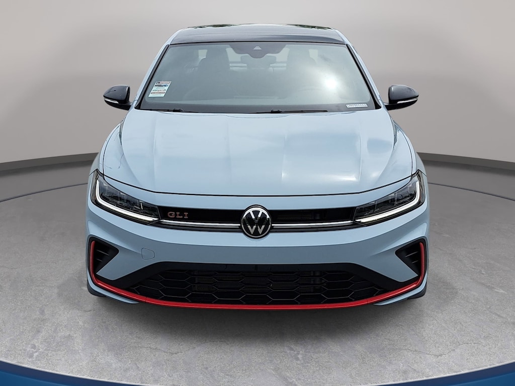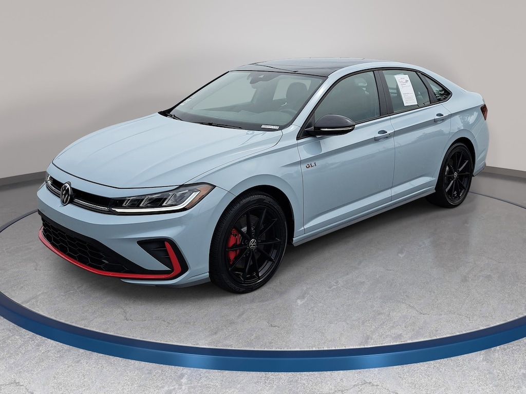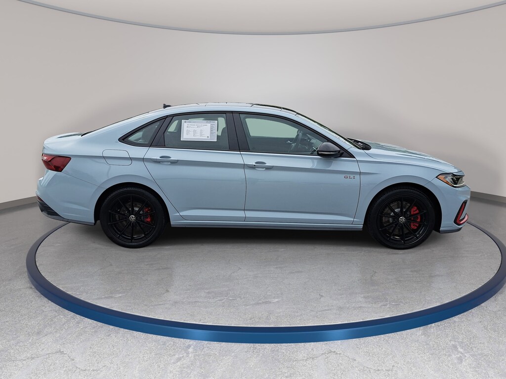 Certified. Monument Gray w/Deep Black Roof 2025 Volkswagen Jetta GLI 2.0T Autobahn FWD Automatic with Tiptronic 2.0L TSI DOHC Certified Warranty - 2 Years / 24,000 Miles, Non-Smoker, 18" black painted alloy wheels, Auto High-beam Headlights, Automatic temperature control, Brake assist, deep black pearl roof, deep black pearl side mirror caps, Electronic Stability Control, Exterior Parking Camera Rear, Four wheel independent suspension, Front dual zone A/C, Fully automatic headlights, GLI black package, Heated front seats, Memory seat, MIB3 composition media with 8" touchscreen radio, perforated vienna leather seating surfaces, Power driver seat, Power moonroof, Rain sensing wipers, Remote keyless entry, sound system substitution credit, Speed-sensing steering, Split folding rear seat, Steering wheel mounted audio controls, Traction control, Ventilated front seats.