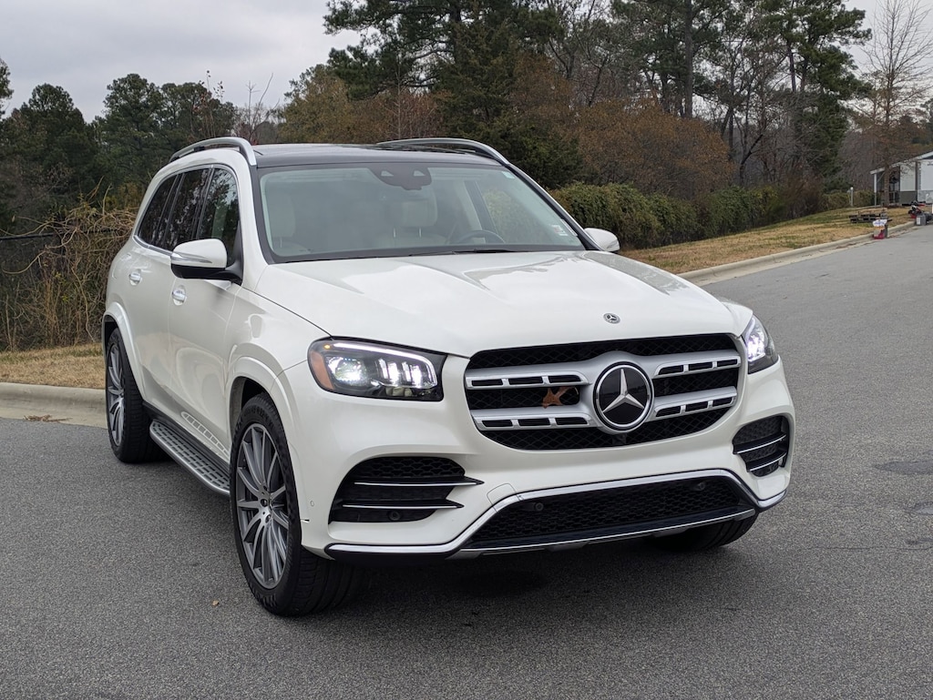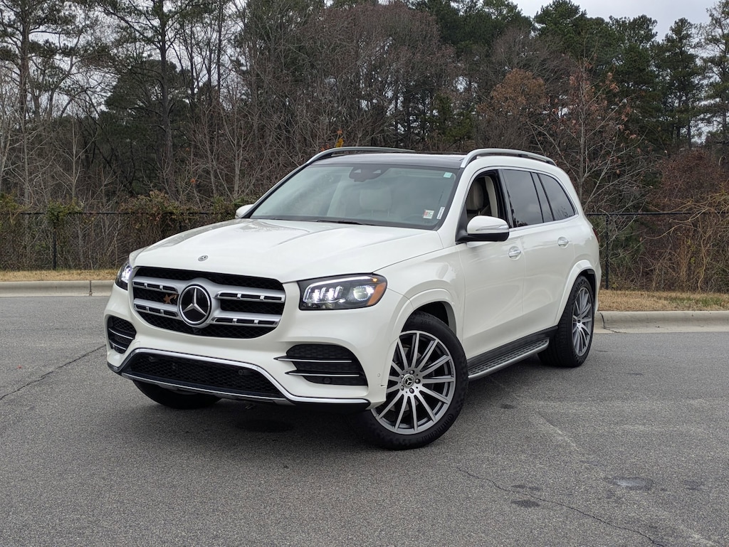 Clean CARFAX. CARFAX One-Owner. Polar White 2021 Mercedes-Benz GLS GLS 580 4MATIC® 4MATIC® 9-Speed Automatic 4.0L V8 1-OWNER, CLEAN CARFAX, LOCAL TRADE IN, BACK UP CAMERA, LEATHER, HEATED SEATS, COOLED SEATS, PANORAMIC SUNROOF, THIRD ROW SEAT, ALL WHEEL DRIVE, SMART KEY W PUSH BUTTON START, DYNAMIC RADAR CRUISE CONTROL, LANE DEPARTURE ALERT W STEERING ASSIST, BLIND SPOT MONITOR W REAR CROSS TRAFFIC ALERT, APPLE CARPLAY & ANDROID AUTO, POWER LIFTGATE, MEMORY SEAT, HOMELINK GARAGE DOOR TRANSMITTER, ADJUSTABLE AUTOMATIC RIDE CONTROL, AERIAL VIEW CAMERA SYSTEM, 3D SURROUND CAMERA, FRONT, LEFT SIDE, RIGHT SIDE - CAMERA, BURMESTER SURROUND SOUND SYSTEM, SOFT CLOSE DOORS, 21" AMG TWIN 5-SPOKE ALLOYS, 1-OWNER, CLEAN CARFAX, MUST SEE!, 13 Speakers, 3rd row seats: split-bench, ABS brakes, Adaptive suspension, AM/FM radio: SiriusXM, Android Auto®, Apple CarPlay®, Apple CarPlay®/Android Auto®, Auto High-beam Headlights, Auto-dimming door mirrors, Burmester® Surround Sound System, Compass, Electronic Stability Control, Front dual zone A/C, Genuine wood dashboard insert, Genuine wood door panel insert, Heated & Ventilated Front Seats, Navigation system: MB Navigation, Panorama Sunroof, Power Liftgate, Rain sensing wipers, Rear dual zone A/C, Smartphone Integration, Steering wheel mounted audio controls, Textured Leather Upholstery, Traction control, Turn signal indicator mirrors.