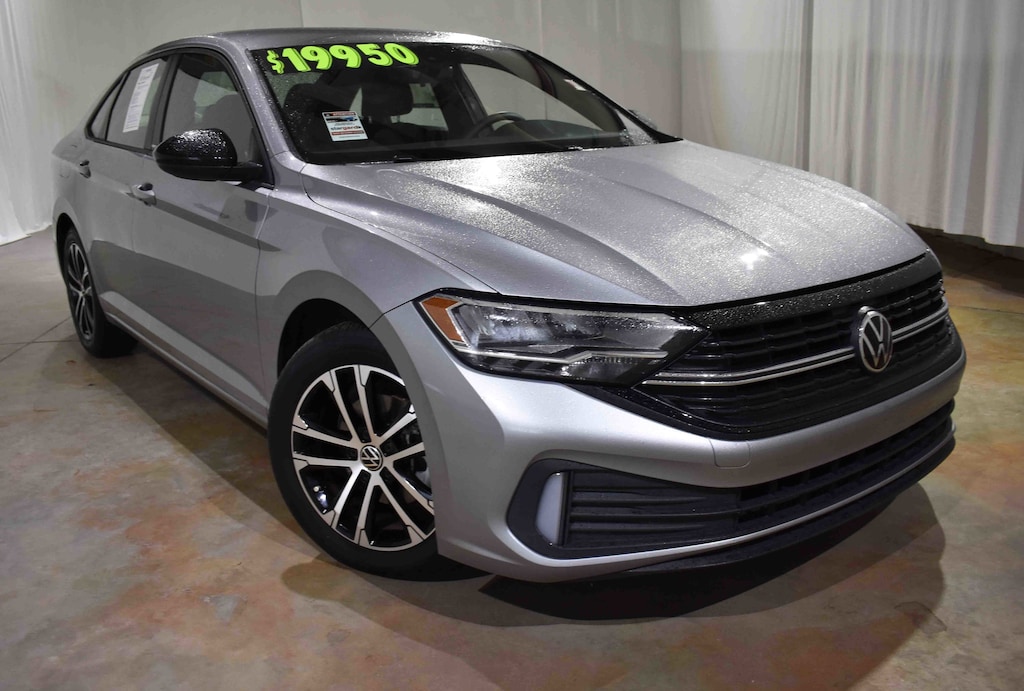 Clean CARFAX. CARFAX One-Owner. Pyrite Silver Metallic 2023 Volkswagen Jetta 1.5T Sport FWD 8-Speed Automatic with Tiptronic 1.5L I-4 DI DOHC Turbocharged 4 Speakers, 4-Wheel Disc Brakes, ABS brakes, Air Conditioning, Alloy wheels, AM/FM radio, Brake assist, Bumpers: body-color, Cloth Seat Trim, Credit - Rear Sensors Removed, Delay-off headlights, Dual front impact airbags, Dual front side impact airbags, Electronic Stability Control, Emergency communication system: VW Car-Net Safe & Secure 5-year, Exterior Parking Camera Rear, Front anti-roll bar, Front Comfort Sport Seats, Front wheel independent suspension, Fully automatic headlights, Heated door mirrors, Heavy Duty Trunk Liner w/VW CarGo Blocks, Illuminated entry, Low tire pressure warning, Occupant sensing airbag, Outside temperature display, Overhead airbag, Overhead console, Panic alarm, Power door mirrors, Power steering, Power windows, Radio data system, Radio: MIB3 Composition Color w/6.5" Touchscreen, Rear anti-roll bar, Rear window defroster, Remote keyless entry, Speed control, Speed-sensing steering, Split folding rear seat, Steering wheel mounted audio controls, Tachometer, Telescoping steering wheel, Tilt steering wheel, Traction control, Trip computer, Variably intermittent wipers, Wheels: 17" 2-Tone Machined Alloy.